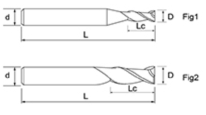 | Nej. | Diameter D | Fløjte Længde Lc | Samlet længde L | Shank Dia d | Klingetælling F |