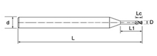 | Nej. | Diameter D | Fløjte Længde Lc | Effektiv længde L1 | Samlet længde L | Shank Dia d | Klingetælling F |