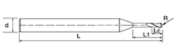 | Nej. | Diameter D | R Vinkel R | Fløjte Længde Lc | Effektiv længde L1 | Samlet længde L | Shank Dia d | Klingetælling F |