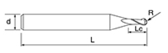 | Nej. | Diameter D | R Vinkel R | Fløjte Længde Lc | Samlet længde L | Shank Dia d | Klingetælling F |