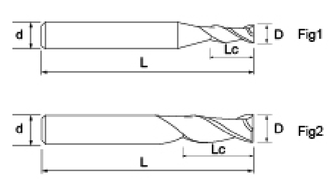 | Nej. | Diameter D | Fløjte Længde Lc | Samlet længde L | Shank Dia d | Klingetælling F |