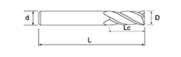 | Nej. | Diameter D | Fløjte Længde Lc | Samlet længde L | Shank Dia d | Klingetælling F |