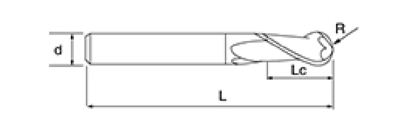 | Nej. | Diameter D | R Vinkel R | Fløjte Længde Lc | Samlet længde L | Shank Dia d | Klingetælling F |