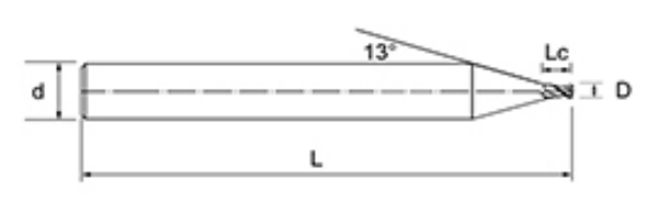 | Nej. | Diameter D | R Vinkel R | Fløjte Længde Lc | Samlet længde L | Shank Dia d | Klingetælling F |