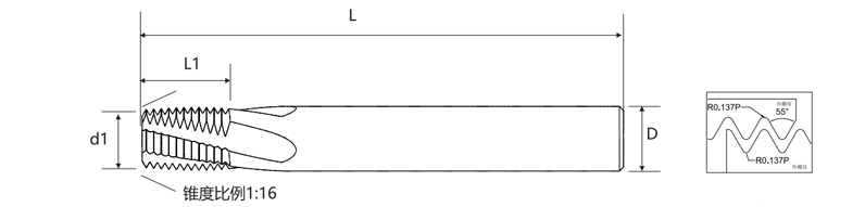 Denne fræser er velegnet til en række forskellige materialer, herunder kulstofstål, legeret stål, rustfrit stål, støbejern, ikke-jernholdige metaller og plast. Tilgængelig i flere specifikationer lige fra RC1/16 til 2", giver det fleksibilitet til at imødekomme forskellige applikationsbehov. Værktøjets design giver mulighed for tilpasningsdygtige parameterkonfigurationer, herunder skærediameter d1, effektiv skærelængde L1, skaftdiameter D og samlet længde L, hvilket optimerer bearbejdningseffektivitet og gevindkvalitet.