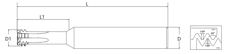 Med fleksible parameterkonfigurationer tilpasser denne fræser sig til forskellige bearbejdningskrav. Kortere skærelængder øger stivheden til krævende applikationer, mens længere skærekanter tillader bearbejdning med dybt gevind. Den optimerede struktur reducerer skæremodstanden, minimerer maskinbelastningen og forbedrer gevindoverfladekvaliteten, hvilket gør det til en effektiv og pålidelig løsning til præcisionsgevindfræsning.